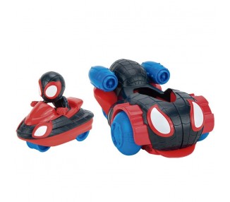 Vehículo 2 en 1 de 15 cm con una figura incorporada. Transforma tu ATV en un Jet Ski de Miles Morales.