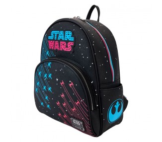 Tamaño: 22,5x26,25x11,25cm. Piel vegana (poliuretano). Tirantes ajustables y estampados. Bolsillo frontal con cremallera. Bolsillos laterales. Colgante de cremallera esmaltado. Apliques, detalles que brillan en la oscuridad y estampados. Forro interior a juego.