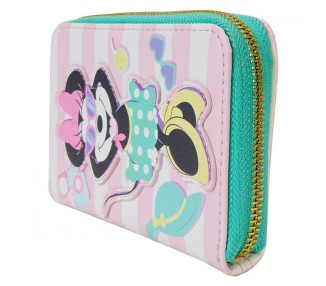 Tamaño: 6,87x10,62x2,5cm. La Cartera está hecha de piel vegana (poliuretano). La cartera se cierra con cremallera y herrajes dorados brillantes. Incluye apliques, grabados, bordados y detalles impresos. Destaca el forro interior a juego.