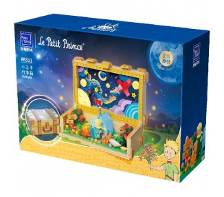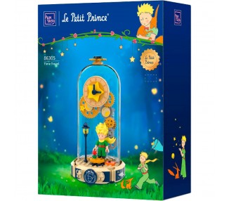 Tamaño: 18x12,5x7cm. Edad: +6 años. Requiere de 1 a 3 horas para su montaje. Cuenta con brazos y piernas articuladas y en el interior del pecho del Principito se esconde una rosa eterna y un reloj de arena.