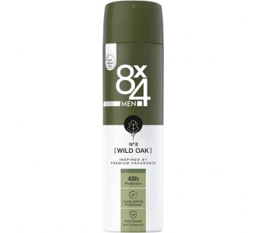 8X4 Men N°8 Wild Oak Antiperspirant Spray 150ml Deodorant with Woody Fragrance Reliable 48h Protection