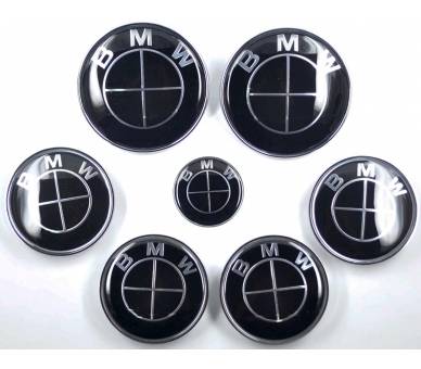 KIT 7 INSIGNIAS BMW / LOGO FULL Black / Bonnet + Trunk + Wheels + Steering wheel