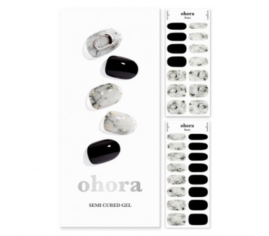 • ohora Semi Cured Gel Nail Strips N Marble Stone - Works with Any Nail Lamps Salon-Quality Long Lasting Easy to Apply & Remove - Includes 2 Prep Pads Nail File & Wooden Stick Black