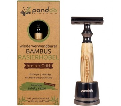 • Pandoo Safety Razor with Holder and Bamboo Handle Zero-Waste Shaver for Men and Women Closed Comb - Plastic-Free Includes eBook and 10 Blades Wide Handle