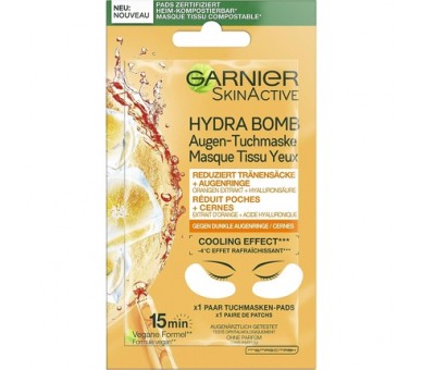 • Garnier Eye Cloth Mask Moisturising Against Dark Circles Reduce Bags Vegan Formula with Orange Extract and Hyaluronic Acid Hydra Bomb 6g Eye Mask