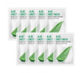 • EUNYUL Purity Facial Sheet Mask Pack ALOE 10pcs Korean Skincare Hydrating Nourishing Natural Ingredients All Skin Type