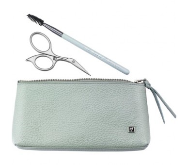 • ZWILLING Twinox Eyebrow Set with Hair Brush and Scissors in Turquoise Leather Case