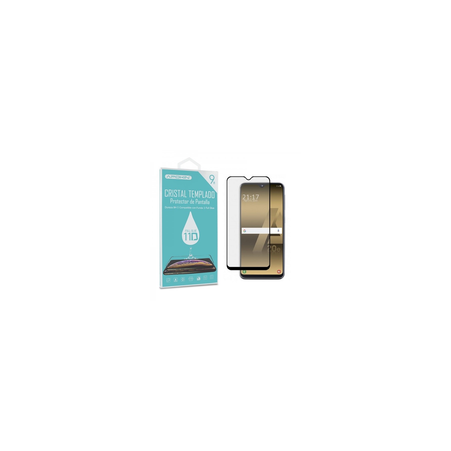 • Cristal templado Full Glue 11D Premium Samsung Galaxy A20E Protector de Pantalla Curvo Negro