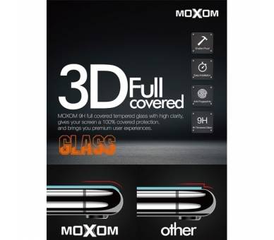Cristal templado MOXOM 3D iPhone 6 / 6S / 7 / 8 Protector de Pantalla con Borde Curvo Color Negro