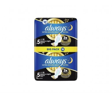 • Always Ultra Sanitary Pads Secure Night Extra with Wings