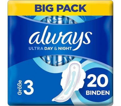 Always Ultra Pads Women's Size 3, Day & Night 20 Pads with Wings