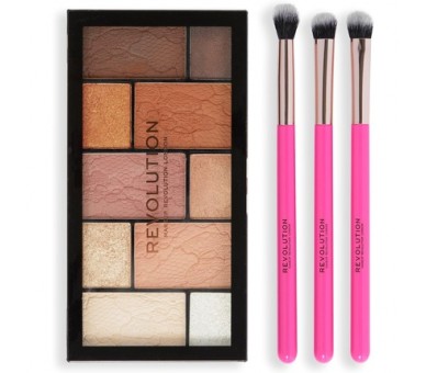 • Revolution Shimmer Glam Eye Set Gift Set 3 Full Sized Makeup Brushes and Eye Palette