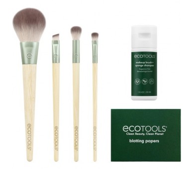 • EcoTools Merry Must-Haves Kit Face and Eyeshadow Makeup Brushes Brush Shampoo and Cleanser Blotting Papers for Matte Makeup Eco-Friendly 6 Piece Gift Set