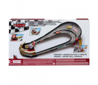 Edad: +3 años. Incluye 2 vehículos, Rayo McQueen y Carstin Ace Dillon. Carrera con cambio de carril. Tamaño: 76cm. Diseñado para parecerse al circuito de Los Angeles Raceway de la primera película de Cars. Se puede conectar a otros conjuntos de Cars.