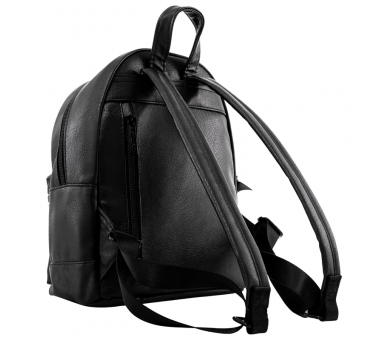 Tamaño: 29x23x17cm. Está fabrica en PU con bolsillos interiores y exteriores, totalmente forradas en Nylon. Tiene un colgante en un lateral, detalles metálicos y en relieve.