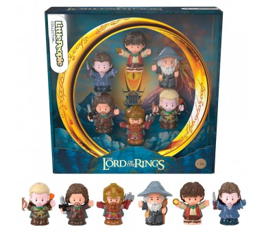 Tamaño aproximado figuras: 7cm. Conjunto de figuras de edición especial de Little People Collector con seis personajes de la trilogía de películas de El Señor de los Anillos. Incluye a Frodo Bolsón, Gandalf el Gris, Aragorn, Arwen, Gimli y Legolas, todos inspirados en los personajes de las películas.