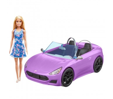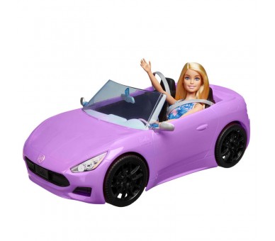 Edad: +3-4 años. Tamaño: 38x36x18,5cm. Incluye muñeca Barbie (29,21cm) con vestido, zapatos y 1 coche. ¡Lánzate a la carretera y diviértete imaginando historias con la muñeca Barbie y su descapotable morado! Abróchale el cinturón a la muñeca Barbie y dale impulso a tu historia con las ruedas giratorias y los detalles realistas, como adornos plateados, una rejilla y ruedas de color negro mate. Este moderno descapotable es deportivo y tiene dos asientos, una matrícula personalizada y la emblemática silueta de Barbie. La muñeca Barbie está lista para cualquier aventura, con un vestido moderno con estampado de palmeras y unas elegantes sandalias blancas.Este conjunto de muñeca y coche de Barbie es un regalo ideal para niñas de 3 a 7 años. ¡Podrán coleccionar otras muñecas y conjuntos de Barbie para ampliar las posibilidades de juego! Se venden por separado y están sujetos a disponibilidad. ADVERTENCIA: No conviene para niños menores de 36 meses.