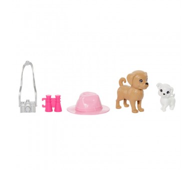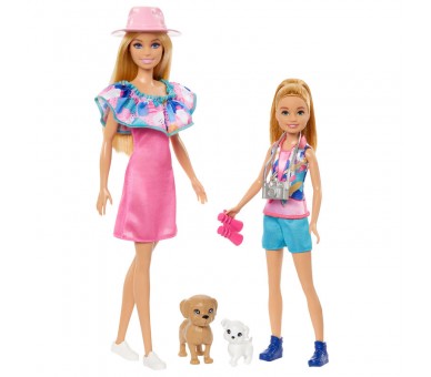 Edad: +3-4 años. Tamaño: 21,5x20,5x32,5cm. Incluye 2 muñecas, 2 figuras de perritos y 3 accesorios. Juega a fortalecer el vínculo especial que une a estas dos hermanas con este conjunto de muñecas, que incluye a Barbie y a su hermana pequeña Stacie. Su ropa de verano y los accesorios están inspirados en sus looks de la película de dibujos animados Barbie and Stacie to the Rescue. Barbie, la mayor de las hermanas, siempre va ideal, y en este caso lleva un vestido con los hombros descubiertos y un volante en el cuello combinad con unas zapatillas de deporte. La muñeca de Stacie, la hermana pequeña, deportista y aventurera, lleva un look divertido formado por una camiseta, unos pantalones cortos y unas zapatillas de deporte. Niños y niñas (a partir de 3 años) pueden jugar a imaginar aventuras en familia con accesorios como una cámara, unos prismáticos, un sombrero de verano y dos perritos. ADVERTENCIA: No conviene para niños menores de 36 meses.