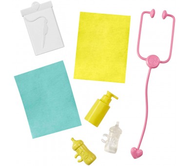 Edad: +3-4 años. Tamaño: 22,5x6,5x32,5cm. El conjunto de juego de Barbie Pediatra incluye una muñeca rubia, dos bebés que son los pacientes y piezas de juguete como una mesa de diagnóstico con una botella de crema y otros accesorios, un móvil encima de las cabezas de los bebés y cunitas separadas para los pacientes. A partir de 3 años. ¡Puedes convertirte en pediatra con el conjunto de juego de Barbie Pediatra! Incluye lo necesario para recrear el ambiente de una consulta de pediatría: la muñeca Barbie Pediatra, los dos adorables bebés pacientes y las piezas de juguete para realizar las examinar y cuidar a los pacientes. La muñeca Barbie Pediatra está lista para cuidar de sus pacientes bebés, vestida con su traje de médica y su estetoscopio alrededor del cuello. ¡Barbie anota en la gráfica lo sanos que están los bebés!Este conjunto de juguete incluye una mesa de diagnóstico con una botella de crema y otros accesorios, un móvil encima de las cabezas de los bebés y cunitas separadas para los dos pacientes. ¡Explora un mundo en el que des rienda suelta a tu imaginación y cuentes todas las historias que quieras con el conjunto de juego de Barbie Pediatra! ADVERTENCIA: No conviene para niños menores de 36 meses.