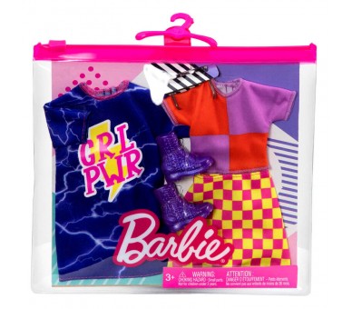 El surtido puede sufrir modificaciones debido a cambios por parte del fabricante y no corresponder con la foto mostrada. Ociostock no será responsable de los problemas ocasionados. Edad: +3-4 años. Tamaño: 20x2x17,5cm. Incluye 2 modelos y 2 accesorios; muñeca no incluida. Ajuste universal diseñado para la mayoría de muñecas Barbie. Los colores y la decoración pueden variar. Estos packs de moda ofrecen el doble de diversión con prendas y accesorios de la muñeca Barbie para crear dos looks completos. Los modelos para Barbie cuentan con un vestido o dos piezas en una variedad de colores y estampados modernos, todos inspirados en las últimas tendencias; algunos looks también incluyen una chaqueta. Los accesorios pueden incluir bolsos, joyas, gafas de sol o tocados. Mezcla y combina las prendas con otra ropa y otros accesorios de Barbie para estimular la imaginación y dar pie a montones de historias (se venden por separado y están sujetas a disponibilidad). Con más variedad, la colección de muñecas Barbie y sus prendas será aún más divertida. Colecciónalas todas para ampliar las posibilidades de juego. ADVERTENCIA: No conviene para niños menores de 36 meses.