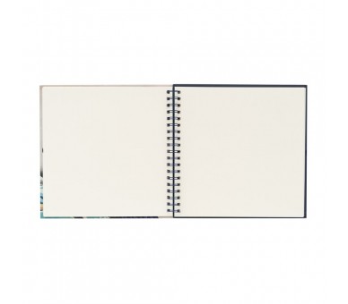 Tamaño: 26x26cm. Contiene 40 páginas. Encuadernación tipo wire-o (anillas). Incluye una cinta para el cierre.