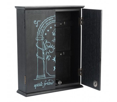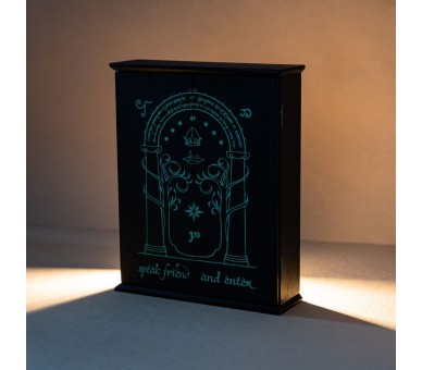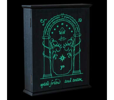The Lord of the Rings. Tamaño: 21x26x6cm. Cuenta con 6 colgadores de aluminio en su interior. Sistema push-to-open para una fácil apertura. Dibujo impreso con tinta luminiscente (visible en la oscuridad). Fabricado en madera MDF.