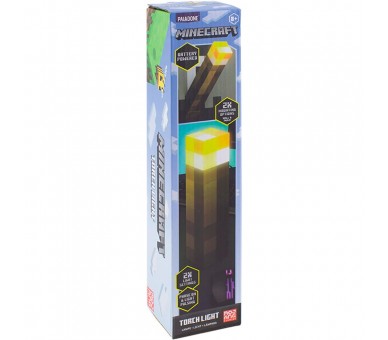 Tamaño: 28,2x5,6cm. El accesorio perfecto para decorar tu habitación friki e iluminarlo de una manera original, sí, la nueva lámpara Minecraft en forma de antorcha es el regalo perfecto. Cuenta con 2 modos de iluminación, una en la que puedes deja la luz fija y otra en la que varia de intensidad como si de un fuego real se tratara. Tiene una base con la que podrás fijarla a la pared de tu habitación como si fuese una antorcha en una cueva y con la función de apagado automático a los 20 minutos, podrá hacer de luz para tu mesita de noche. Funciona con 3 pilas AAA (no incluidas).