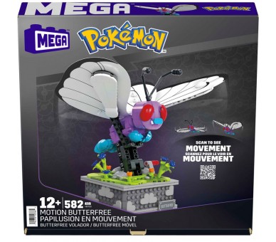 Edad: +12 años. Conjunto de construcción de 605 piezas con un Butterfree mecanizado: Gira la manivela para activar las alas de Butterfree. Incluye un expositor construible y placas de identificación intercambiables en diferentes idiomas. Las piezas pueden combinarse con todos los conjuntos de construcción de Pokémon de MEGA y son compatibles con otras marcas.