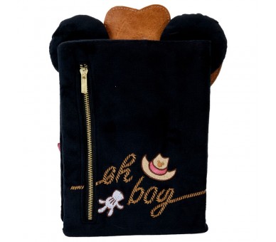 Tamaño: 16,25x21,8cm. El Loungefly Western Mickey Plush Journal está hecho con piel vegana (poliuretano) y herrajes dorados brillantes. Incluye detalles de felpa, apliques, repujados, bordados e impresos.