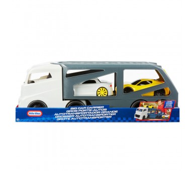 Edad: +3 años. Plástico resistente. Incluye 2 coches deportivos. El camión se desmonta. La rampa se desliza para subir y bajar los coches. Un deportivo puede ir en la perte superior. Apto para su uso en interior y exterior. Tamaño: 64x19x25cm.