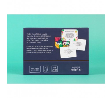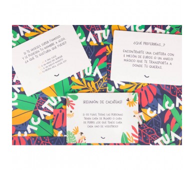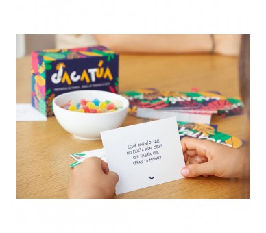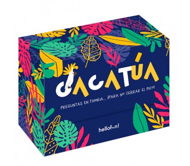Idioma: Español. Tamaño: 14,8x10,8x7cm. Edad: +2 años. Numero de jugadores: +2. Teneis en vuestras manos Cacatúa. El juego de preguntas que nunca os habeis hecho. 101 preguntas curiosas para parlotear sin fin y pasar un rato genial en familia. ¡Dejad volar vuestra imaginación!