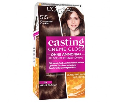 • L'Oréal Paris Ammonia-Free and Silicone-Free Hair Color, Nourishing Intensive Tint with Gloss-Reflex Balm, Casting Crème Gloss Hair Color 515 Chocolate Cookie