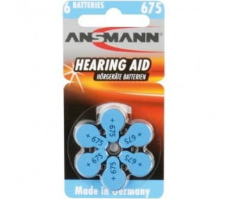 ANSMANN Hearing Aid Batteries 675 Blue 6 Pack - Zinc...
