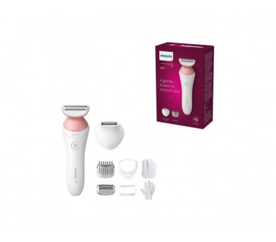 Philips Lady Shaver Series 6000 Cordless Shaver with 6 Accessories Body Peeling Glove Bikini Trimmer White/Pink