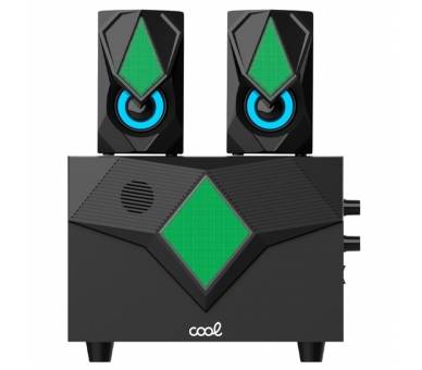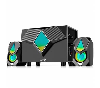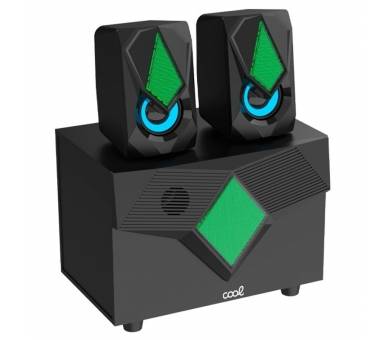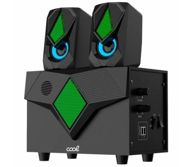 Equipo completo de audio para PC. Cuenta con iluminación LED de tono suave, que cambia de color en 7 niveles de forma gradual. Conexión USB, control de volumen con rueda e interruptor de encendido/apagado. También tiene un control de rueda para ajustar el sonido de bajo.