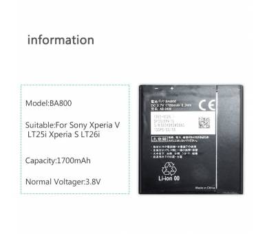 • Bateria Original Ba800 Para Sony Xperia S Lt26I Arc Hd V Lt25I Arc S 1700