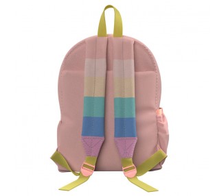 Tamaño: 31x18x40cm. Sus tiras y espalda se encuentran reforzadas para mayor comodidad del usuario. Cuenta con un bolsillo frontal para poder guardar pequeñas pertenencias y un amplio compartimento central con cierre de chapa. Además está decorada con un original bordado.