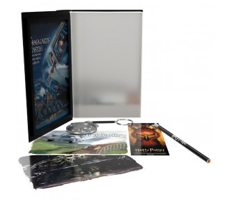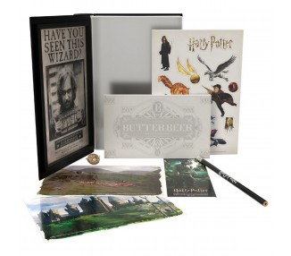 Tamaño: 19,3x4x15cm. Contenido: 1 marcapáginas Sirius Black, 2 postales exclusivas, 1 lápiz personalizado, 1 hoja de pegatinas, 1 pin de la Snitch, 1 bloc de notas de la Cerveza Butterbeer, 1 caja libro metálica.