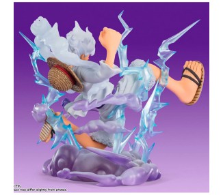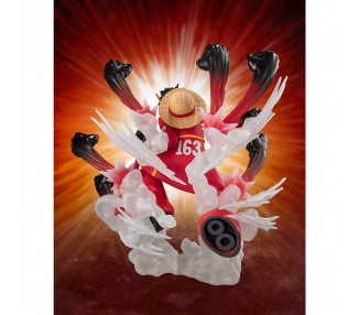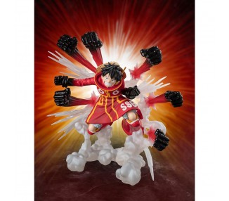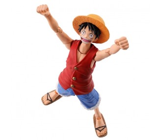 Tamaño: 15,5cm. Figura articulada. Contiene: 3 expresiones faciales, 3 pares de manos, 1 parte para el pelo, 1 sombrero, 1 par de brazos y piernas con su poder gomu gomu, 1 parte para el cuerpo inferior con efecto, 1 base con soporte
