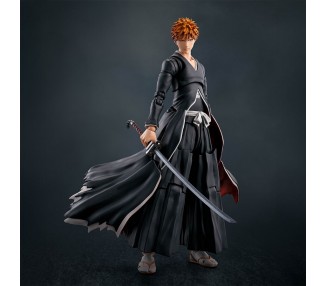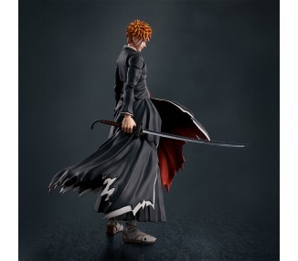 Tamaño: 15,5cm. Figura articulada. Contiene: 3 pares de manos intercambiables, 3 expresiones faciales (sangrando, enfadado con media máscara y máscara entera), 1 pieza de efecto Getsuga Tensho, su espada Tenchain Zangetsu y 1 pedestal.