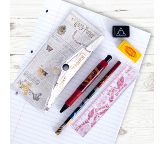 Tamaño: 20,5x9x2cm. Contenido: bolígrafo, lápiz, goma, regla y sacapuntas.
