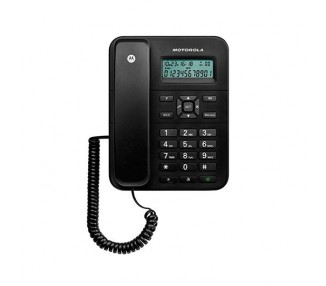 El teléfono fijo Motorola CT202 ofrece la simplicidad de un teléfono fijo y la comodidad de un manos libres. Podrás ver en todo momento quién está llamando gracias a su gran pantalla con identificador de llamadas.