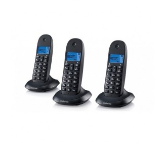 Teléfono inalámbrico Motorola compuesto por tres terminales con pantalla retroiluminada azul, manos libres, agenda de 50 contactos, función Mute, registro de las últimas 40 llamadas, 10 melodías de timbre seleccionadas y compatible GAP lo que le permite registrar hasta 5 portátiles en la misma base y realizar llamada interna y transferir llamadas desde un portátil a otro que esté conectado a la...