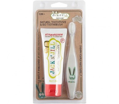 • Jack N' Jill Strawberry Tooth Buddy Combo Pack Natural Certified Toothpaste and Kids Toothbrush - Bunny/Strawberry 2 Count
