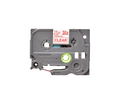 Cinta Laminada Original de Etiquetas para BROTHER TZE132 - TEXTO ROJO SOBRE FONDO TRANSPARENTE - ANCHO 12MM X 8 METROS
