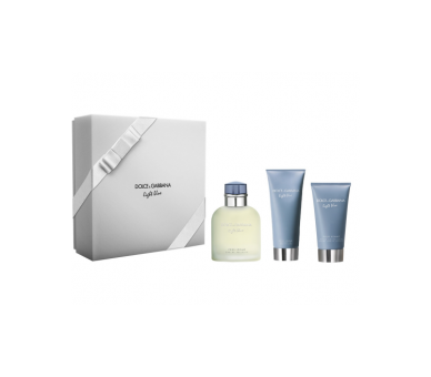 - Nombre del Juego: Dolce & Gabbana - Light Blue Pour Homme EDT 125 ml + Bálsamo After Shave 75 ml + Gel de Ducha 50 ml - Giftset: Este set incluye una botella de Eau de Toilette, un bálsamo after shave y un gel de ducha en la fragancia Light Blue Pour Homme.