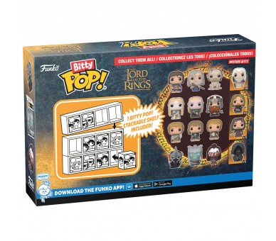 The Lord of the Rings. Tamaño: 2,2cm. Cada pack de 4 viene con un Bitty Pop! misterioso raro o hiperraro para completar la serie. Los Bitty Pops! vienen en estuches de acrílico duro con tapas inferiores desmontables. ¡Las tapas inferiores desmontables sirven de base acrílica, a la que se adhieren las figuras Bitty Pop! Tus Pops! favoritos se han convertido en Bitty Pops! Amplía tu colección con este surtido de figuras Bitty Pop! de tus personajes de dibujos animados más queridos.