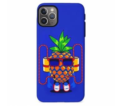 Funda Gel Doble Capa IPhone 11 Pro Max - Piña en fondo Azul