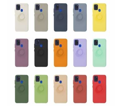 Funda Gel Silicona Suave Flexible para Samsung A21S Imán Soporte Anilla