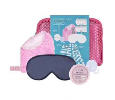 • GLOV Travel Set for Women 4 in 1 Skincare Makeup Remover Towels Microfiber + Satin Sleep Mask + Magnet Cleanser Soap + Hook + Toiletry Bag Gift Set for Travel